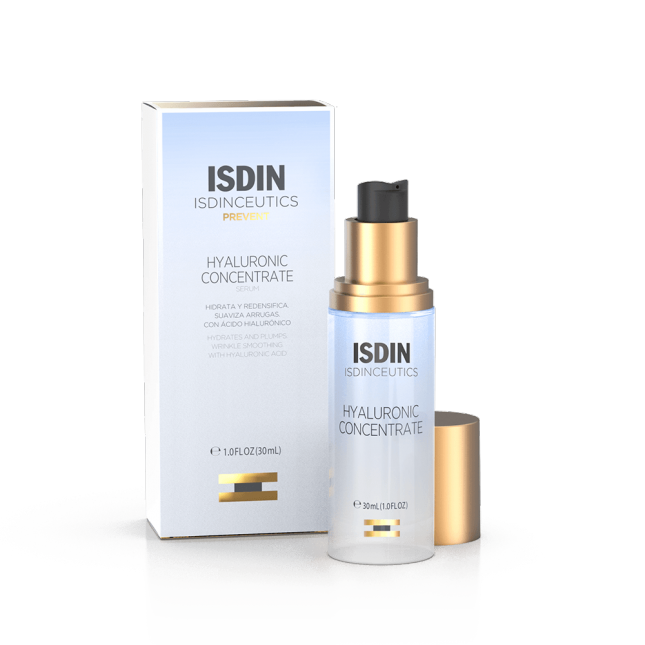 Hyaluronic Concentrate es un sérum facial con ácido hialurónico puro de bajo y medio peso molecular y textura aqua-gel que proporciona una hidratación superficial y profunda. Proporciona una hidratación intensa y ayuda a mantener la función barrera de la piel. Aporta un efecto plump y ayuda a redensificar la piel desde dentro, rellenando las arrugas. Promueve una piel más tersa, firme y mejora el tono y la elasticidad de la piel. Reduce visiblemente el poro y la producción excesiva de sebo, para una tez más uniforme. Ayuda a rellenar la piel y prevenir las primeras arrugas y líneas de expresión, disminuye la apariencia de los poros y aporta luminosidad, para una piel radiante. Ya puedes comprar este sérum de Isdinceutics.